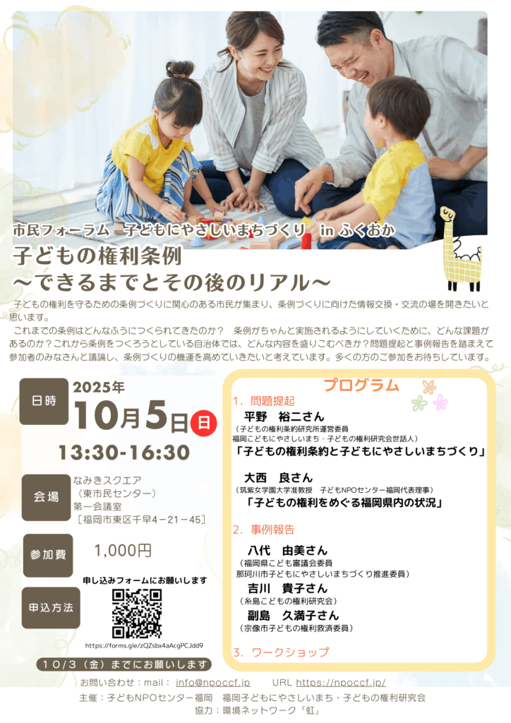■主 催:特定非営利活動法人 子どもNPOセンター福岡